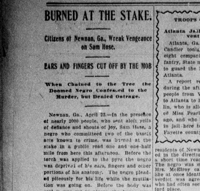 Sam Hose was one of 27 people lynched in Georgia that year. His lynching was one of the 458 that occurred in the state between the end of Reconstruction and 1930.